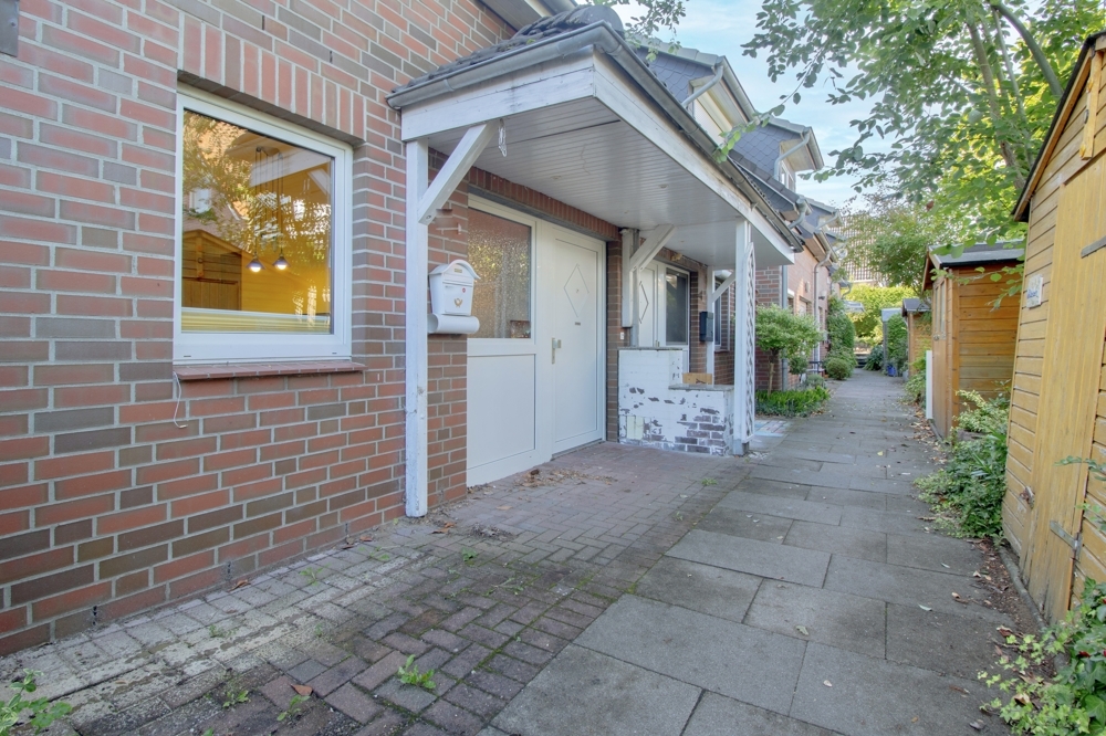 Dieses charmante Mittelreihenhaus befindet sich in beliebter Lage von Geesthacht-Besenhorst. Das Häuschen steht auf einem nach WEG aufgeteilten Grundstück. Der Miteigentumsanteil beträgt 1/7, entsprechend ca. 265 m². Die Wohnfläche erstreckt sich über ca. 92 m² im Erd- und Obergeschoss. Zusätzlich verfügt das Haus über einen Teilkeller. Ein Carport-Stellplatz gehört ebenfalls dazu. Der pflegeleicht angelegte Garten überzeugt mit einer sonnigen Süd-West-Terrasse, die mit einer Markise ausgestattet ist.