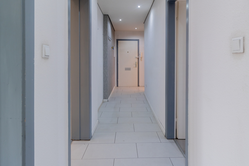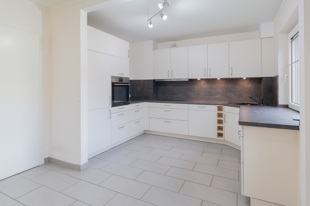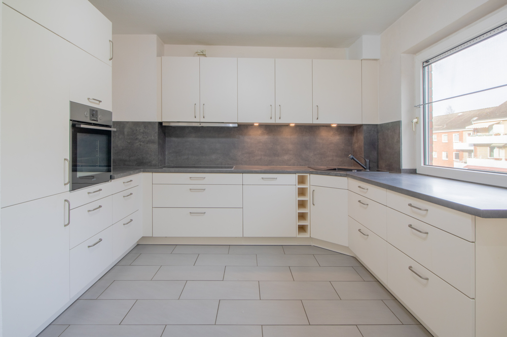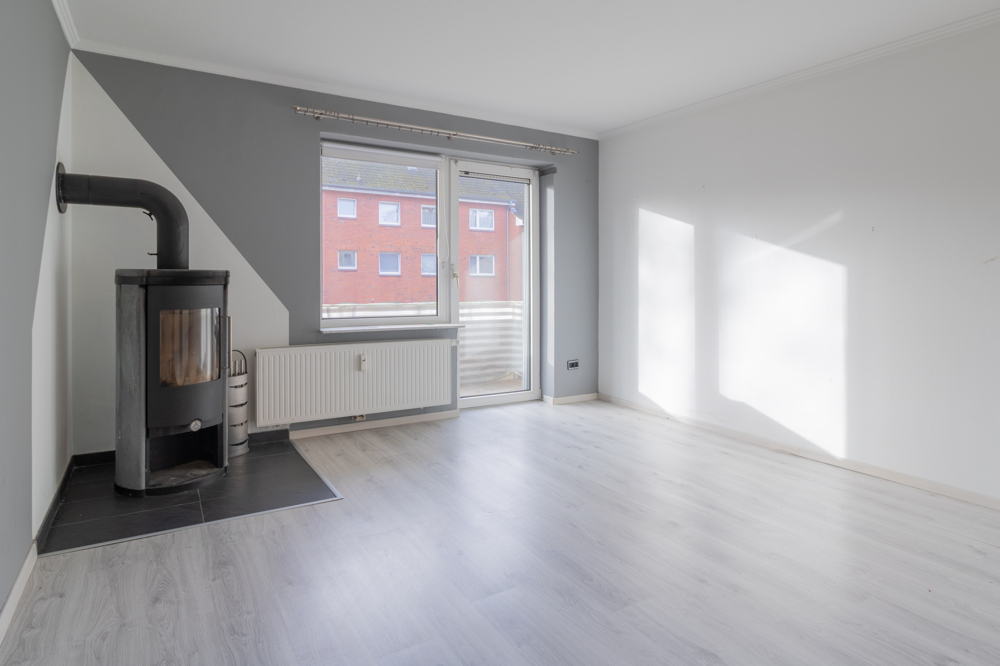 Beim Betreten der Wohnung gelangen Sie über den langen Flur in die einzelnen Räume. Die Decke wurde hier abgehängt und mit integrierten Beleuchtungsspots versehen, was der Wohnung einen einladenden und modernen Eindruck verleiht. Zunächst erreichen Sie das Tageslichtbad, welches mit einer Badewanne ausgestattet und mit zeitlosen, hellen Fliesen versehen ist. Anschließend gelangen Sie in den großzügigen Küchenbereich, der durch einen Wanddurchbruch vergrößert wurde. Die Küche ist mit einer hochwertigen und gut ausgestatteten Einbauküche versehen. Diese bietet unter anderem einen Backofen in Stehhöhe, ein großes Kochfeld, eine Spülmaschine sowie eine Kühl-Gefrierkombination. Zudem stehen großzügige Arbeitsflächen und ausreichend Stauraum zur Verfügung. Die liebevoll zubereiteten Speisen können direkt im integrierten Essbereich serviert werden. Der helle Wohnbereich bietet gute Stellmöglichkeiten und verfügt über einen direkten Zugang zum Balkon. Ein besonderes Highlight ist der Kaminofen, der für eine gemütliche Wohnatmosphäre sorgt – eine Seltenheit in Eigentumswohnungen. Darüber hinaus stehen Ihnen zwei Schlafzimmer zur Verfügung.