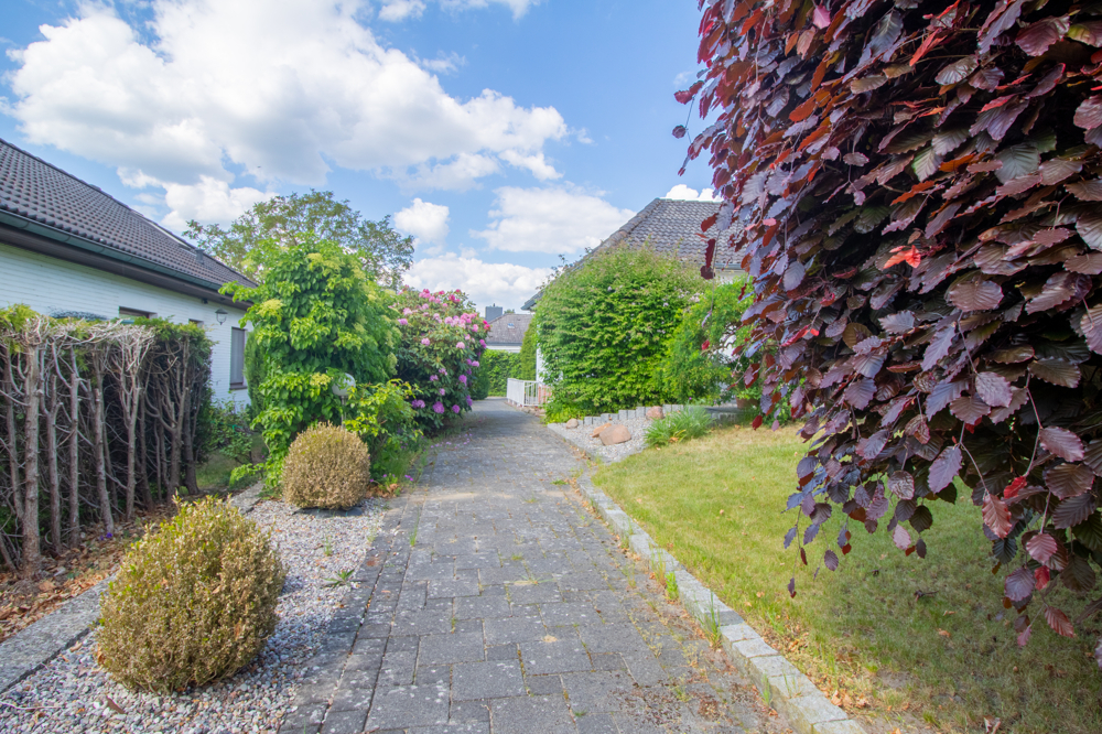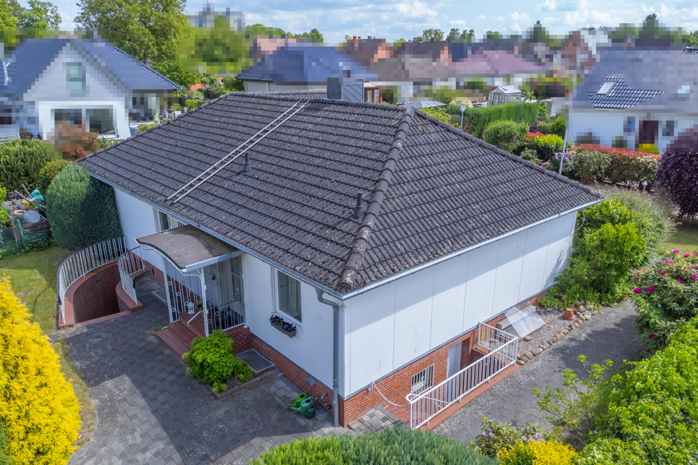 Dieser attraktive Bungalow wurde ca. im Jahr 1968 in Fertigbauweise mit einer Eternitfassade errichtet und ca. im Jahr 1970 durch einen Anbau in solider Massivbauweise erweitert. Ursprünglich als separate Wohneinheit mit eigenem Grundbuch genutzt, wurde der Anbau später durch einen Durchbruch mit dem Haupthaus verbunden. Das Ergebnis ist ein großzügiger, ebenerdiger Grundriss mit insgesamt ca. 121 m² Wohnfläche. Besonders hervorzuheben ist der wohnlich ausgebaute Vollkeller, der zwei zusätzliche großzügige Räume sowie ein Badezimmer umfasst – ideal als Hobbybereich, Gästezimmer oder Homeoffice. Das ca. 650 m² große Grundstück liegt am Ende einer ruhigen Stichstraße und überzeugt durch eine gepflegte Terrasse mit Blick in den grünen Garten – perfekt für entspannte Stunden im Freien. Zum Haus gehören außerdem zwei Garagen in unmittelbarer Nähe. Diese befindet sich auf einem benachbarten Garagengrundstück, das im Erbbaurecht vergeben ist. Der jährliche Erbbauzins beträgt lediglich 50,91 €. Die beiden Garagen bieten praktischen Stauraum und Witterungsschutz für Ihre Fahrzeuge.