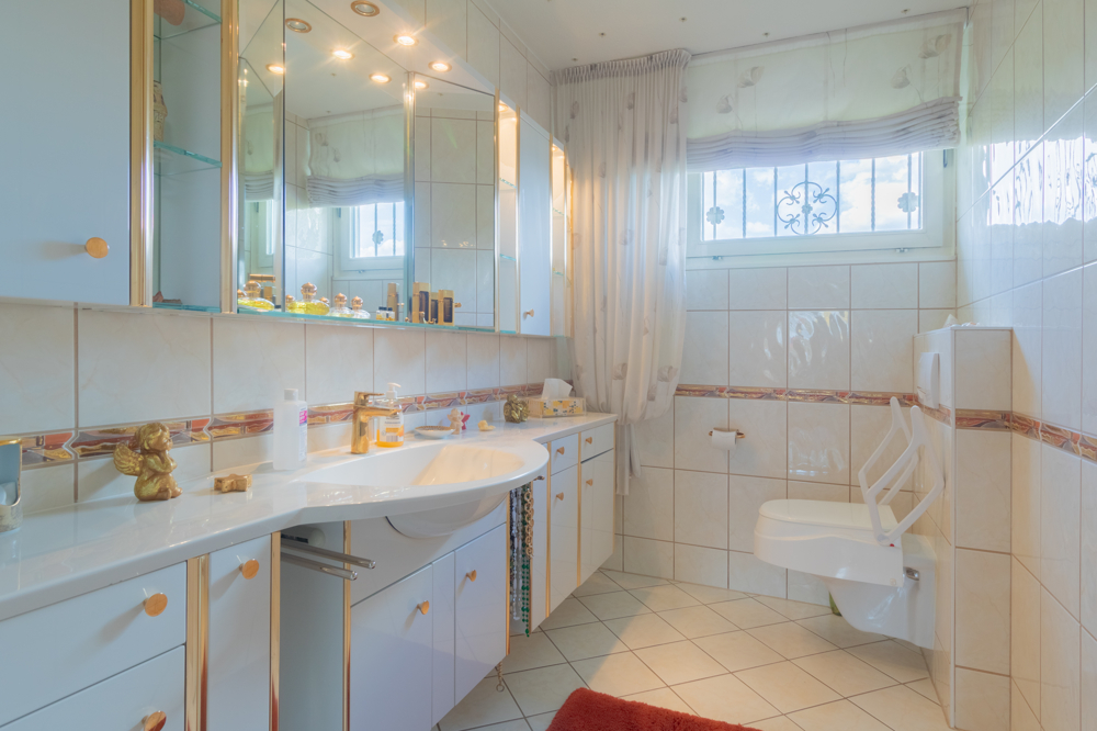 Der Spitzboden ist über eine Bodentreppe erreichbar und kann als zusätzliche Abstellfläche oder Hobbyraum genutzt werden. Sowohl das Haupthaus als auch der Anbau sind unterkellert – die beiden Kellerbereiche sind nicht miteinander verbunden, verfügen jedoch jeweils über einen separaten Außenzugang. Im Untergeschoss befinden sich zudem zwei großzügige Räume und ein weiteres Badezimmer. Die Beheizung des Hauses erfolgt über eine gasbetriebene Brennwerttherme aus dem Jahr 2011. Die Fenster bestehen überwiegend aus doppeltverglastem Holz und stammen aus den Jahren 1968 bis 1999. Ein Küchenfenster wurde im Jahr 2000 durch ein Kunststofffenster ersetzt.