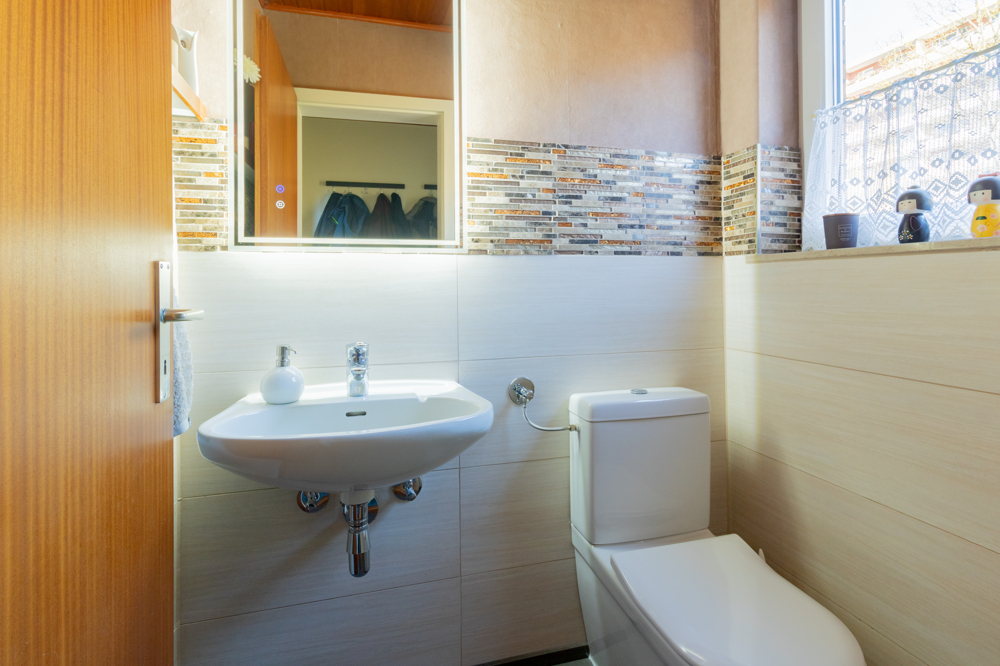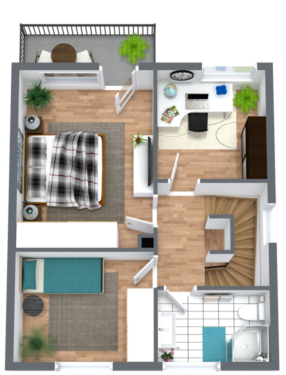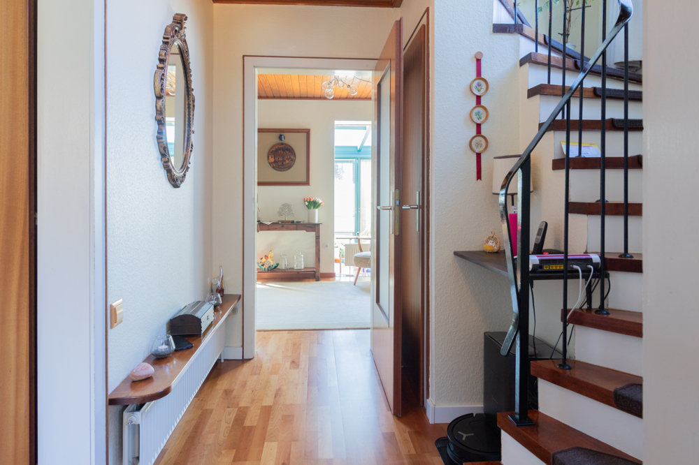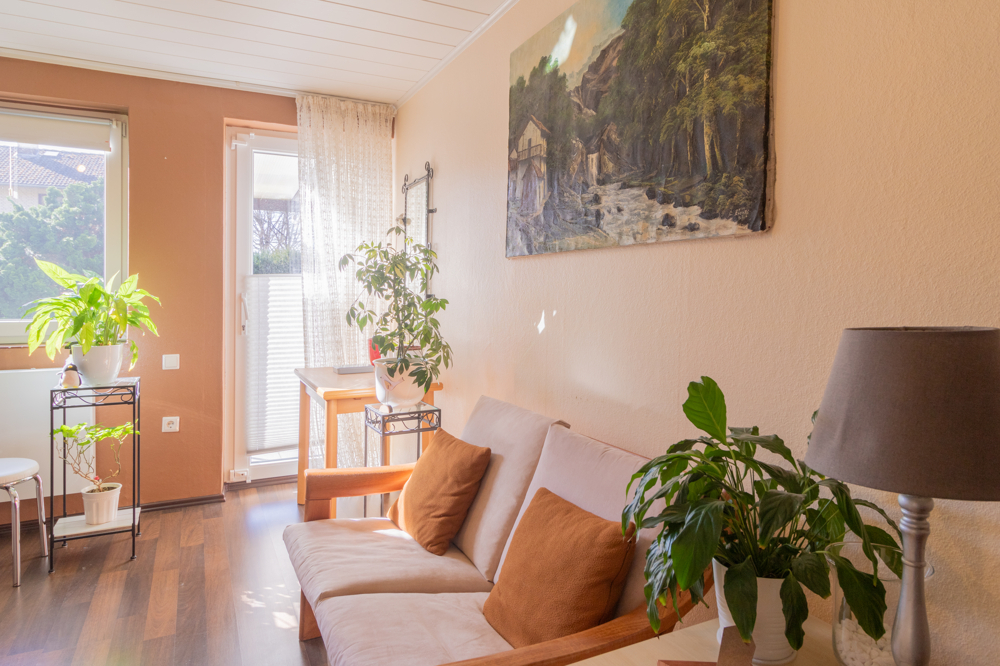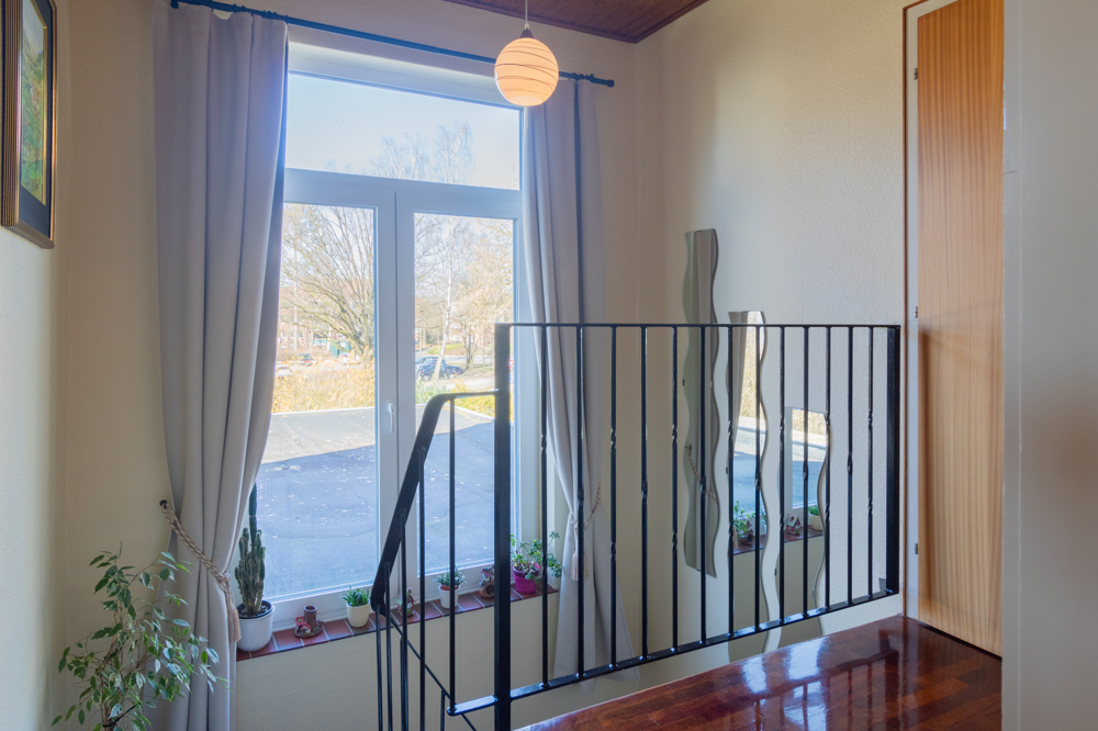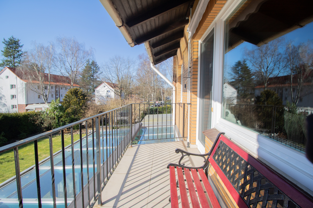 Das Obergeschoss ist als Vollgeschoss ohne Dachschrägen ausgeführt und bietet dadurch eine besonders gute Nutzbarkeit der Räume. Hier stehen Ihnen zwei Schlafzimmer sowie ein weiteres Zimmer, das sich ideal als Büro oder Gästezimmer eignet, zur Verfügung. Eines der Schlafzimmer verfügt über einen direkten Zugang zum Balkon mit schönem Blick in den großzügigen Garten. Das Tageslichtbad ist mit einer Dusche ausgestattet und wurde im Jahr 2010 modernisiert. Teilweise ist das Obergeschoss mit Parkettboden versehen, was für eine angenehme Wohnatmosphäre sorgt.